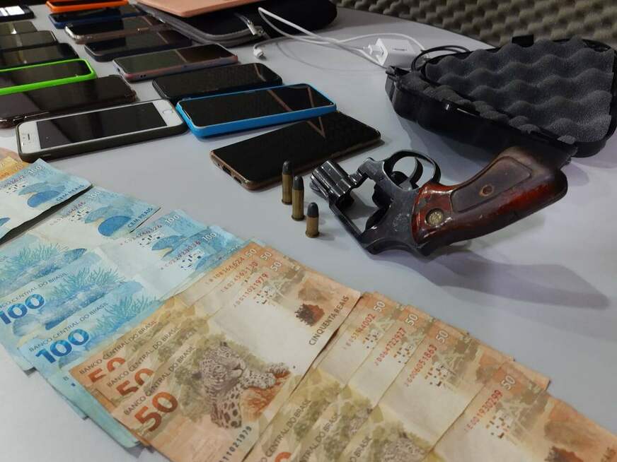 Durante a operação, foram apreendidos dois veículos da marca Volkswagen, sendo um modelo Saveiro, e o outro polo; um veículo Ford Ka; e uma motocicleta Honda, modelo Biz; além de cerca de R$ 5 mil em espécie, 15 aparelhos celulares, um notebook, uma arma de fogo e 25 munições de calibre 20.