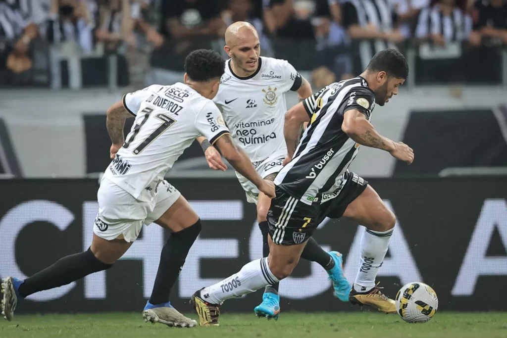 E a virada corintiana veio logo depois, conquistada muito em função da boa entrada dos seus suplentes, ao contrário do que aconteceu com o Galo, que perdeu ritmo depois das trocas. Em rápido contra-ataque, Giovanni, acionado pelo técnico Vitor Pereira durante a etapa final, foi derrubado na grande área por Alonso, em infração confirmada após consulta ao VAR. Fábio Santos bateu o pênalti no canto direito, fazendo 2 a 1.