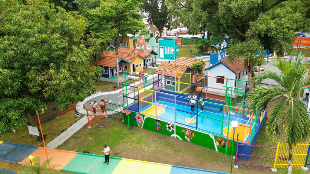 Redação – O prefeito de Manaus, David Almeida, reabriu, nesta sexta-feira, 31/10, o parque “Cidade da Criança” totalmente revitalizado, localizado na rua Castro Alves, bairro Aleixo, zona Centro-Sul. O parque abriga brinquedos clássicos como a Casa do Tarzan, Gangorras, Forte Apache, Miniquadra Poliesportiva e o Teatrinho, todos reformados e prontos para receber as crianças. Durante a reabertura, o prefeito anunciou duas novas obras dentro do complexo, a praça molhada e uma creche municipal, ampliando o conceito do espaço como um ambiente de lazer, educação e convivência familiar.