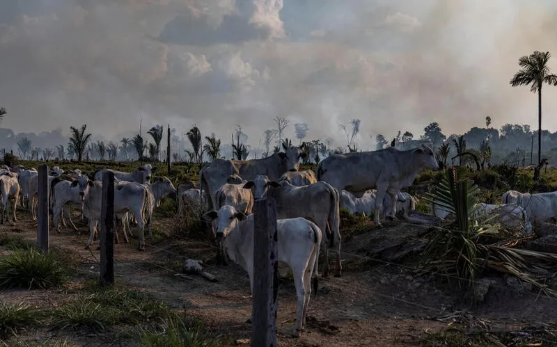 Segundo o relatório, os focos de incêndio se concentram em áreas agropecuárias, usadas para criação de gado e plantio de ração animal. O documento aponta que, entre 2019 e 2024, mais de 30 milhões de hectares – uma área equivalente à Itália – queimaram num raio de 360 quilômetros das instalações da JBS, maior empresa de carne do mundo.