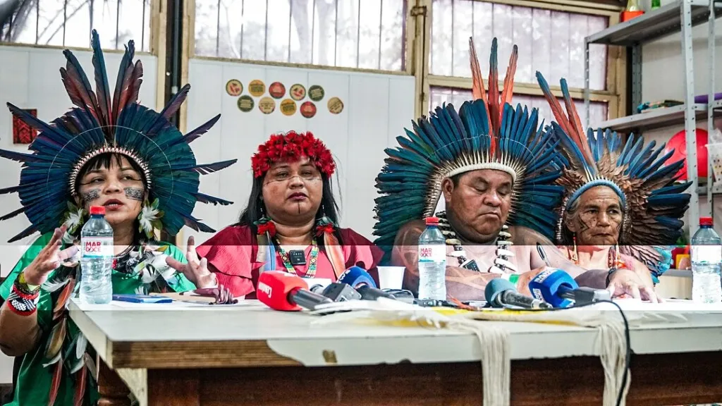 Redação – BELÉM (PA) – Lideranças indígenas do Baixo Tapajós, no Estado do Pará, cobraram do presidente Luiz Inácio Lula da Silva (PT) ações concretas diante dos problemas que ameaçam os povos originários que habitam a região. O pedido ocorreu durante coletiva de imprensa, realizada na tarde desta quarta-feira, 12, na Universidade Federal do Pará (UFPA), um dia após o ato que culminou na entrada a uma área de acesso restrito da Zona Azul, na 30ª Conferência das Nações Unidas sobre Mudança do Clima (COP30), na noite de terça-feira, 11, em Belém.