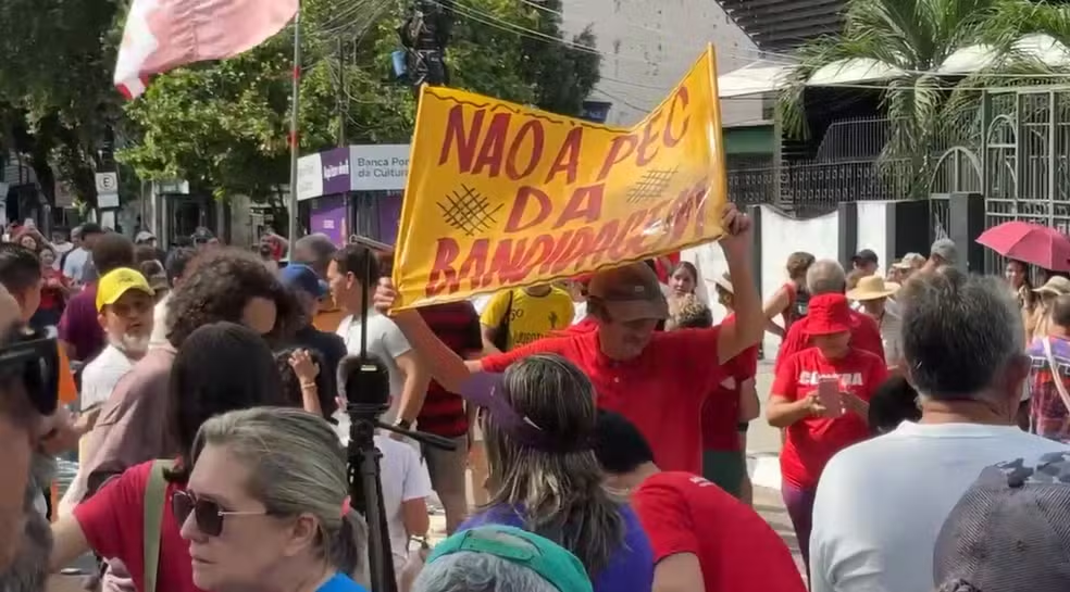 Redação – Um grupo formado por entidades estudantis, sindicatos, movimentos sociais e partidos políticos realizou, na manhã deste domingo (14), uma manifestação contra o Projeto de Lei da Dosimetria e a proposta de anistia a condenados pelos atos de 8 de janeiro de 2023.