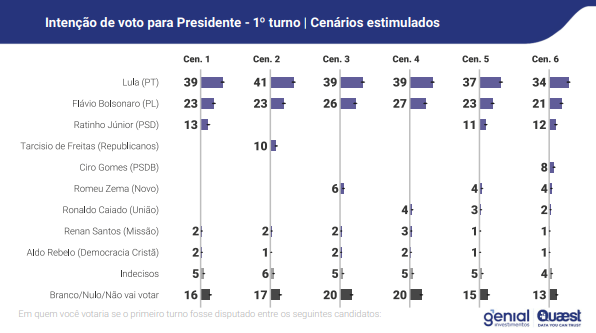Para Helso Ribeiro, esse quadro reforça a ideia de que o cenário está aberto e sujeito a mudanças. “Esse quadro é o momento e não significa que ele vai necessariamente se manter, ainda há tempo tanto para a consolidação quanto para a reversão desse cenário”, explicou.