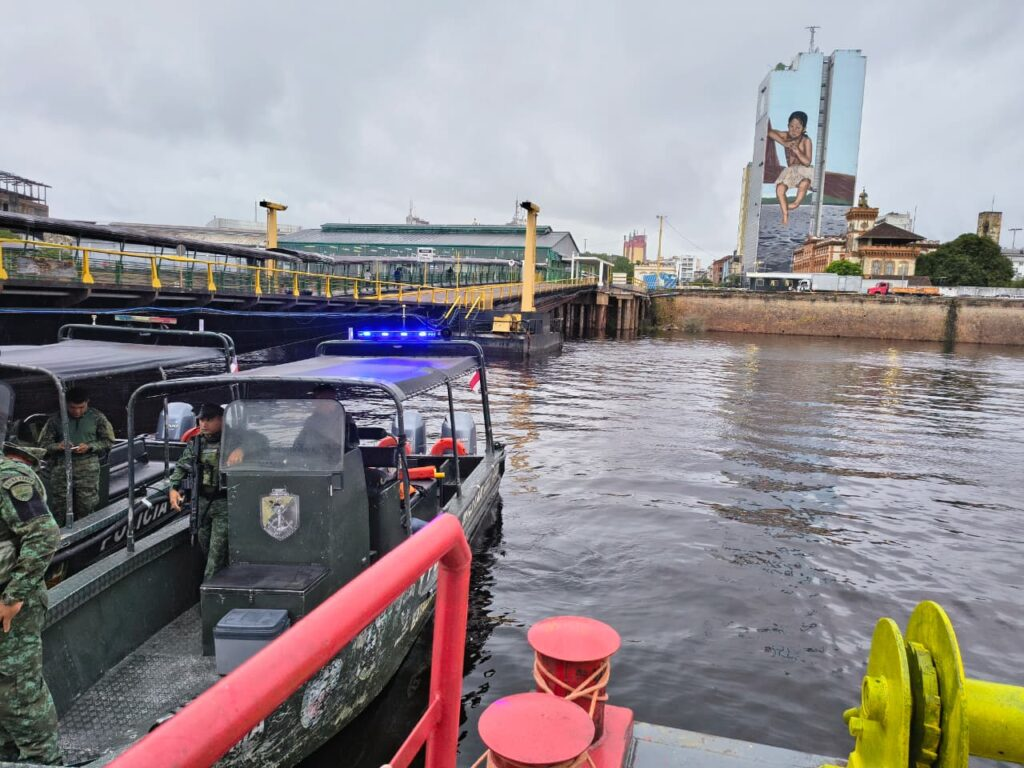 “Fatores que complicam a operação são os fatores hidrodinâmicos ali do Encontro das Águas, dos rios Solimões e Negro, correntes de arrasto, diferença de densidade de um rio para o outro e a formação de redemoinhos, que são muito complicadores. Além disso, há os fatores meteorológicos”, explicou o comandante.