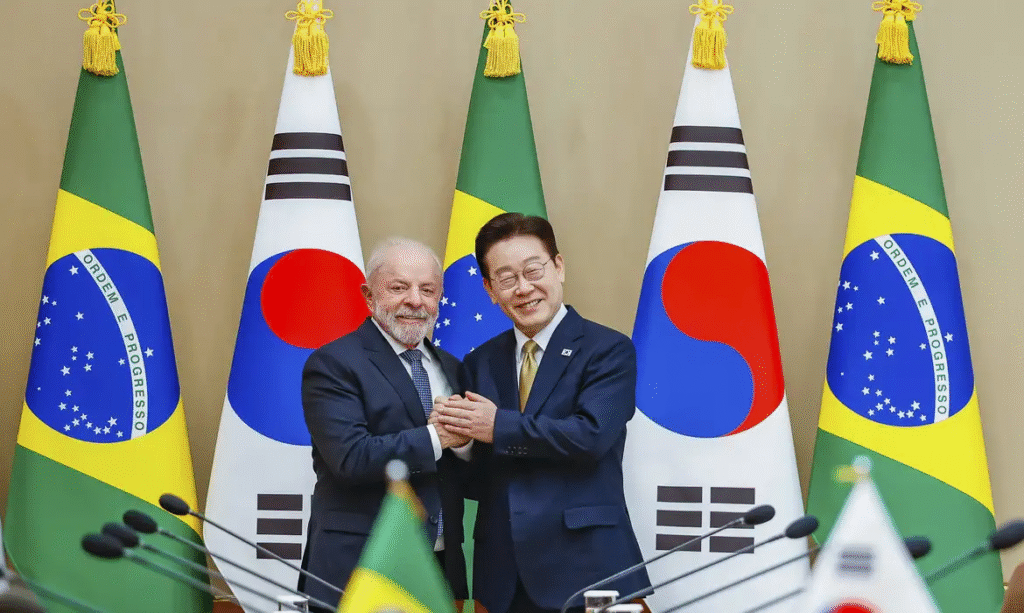 Hoje, Lula ressaltou as negociações para um acordo comercial entre Coreia e o Mercosul serão retomadas. Elas estão paradas desde 2021.