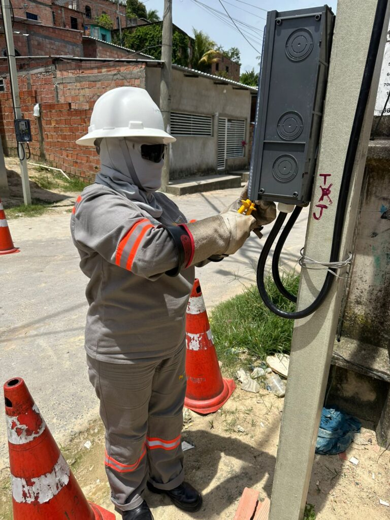 Profissional da Amazonas Energia, ela atua diretamente na manutenção da rede elétrica, em uma rotina que inclui subir em postes de alta tensão, lidar com equipamentos especializados e enfrentar diferentes condições de campo.
