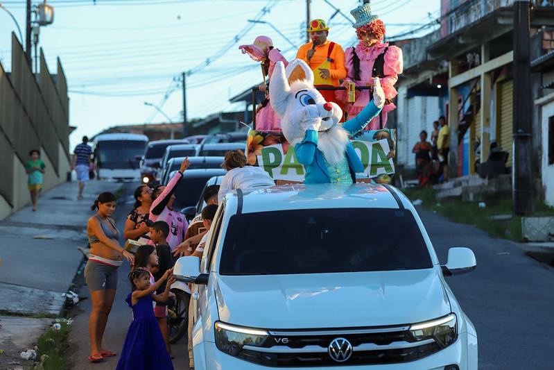 A celebração também contou com a “Caravana do Coelhinho” percorrendo ruas do bairro até a comunidade Milênio, criando um momento de interação direta com a criançada e moradores da zona Norte. O ajudante de carga Jacó Lopes, ressaltou a importância de manter esse calendário festivo para a juventude local.