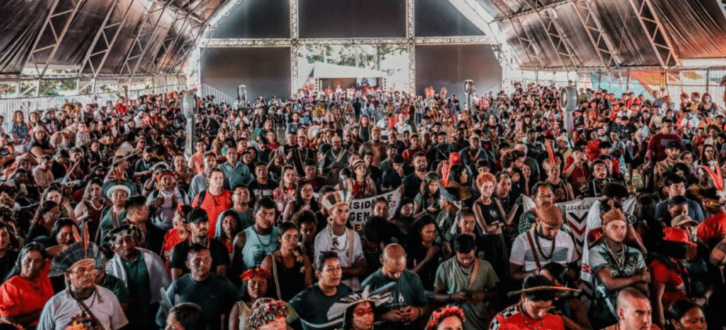 A programação reúne plenárias, marchas e encontros políticos ao longo da semana, com participação de representantes de diferentes povos. A organização indica que os debates abordam temas como direitos territoriais, democracia e participação indígena na política institucional.